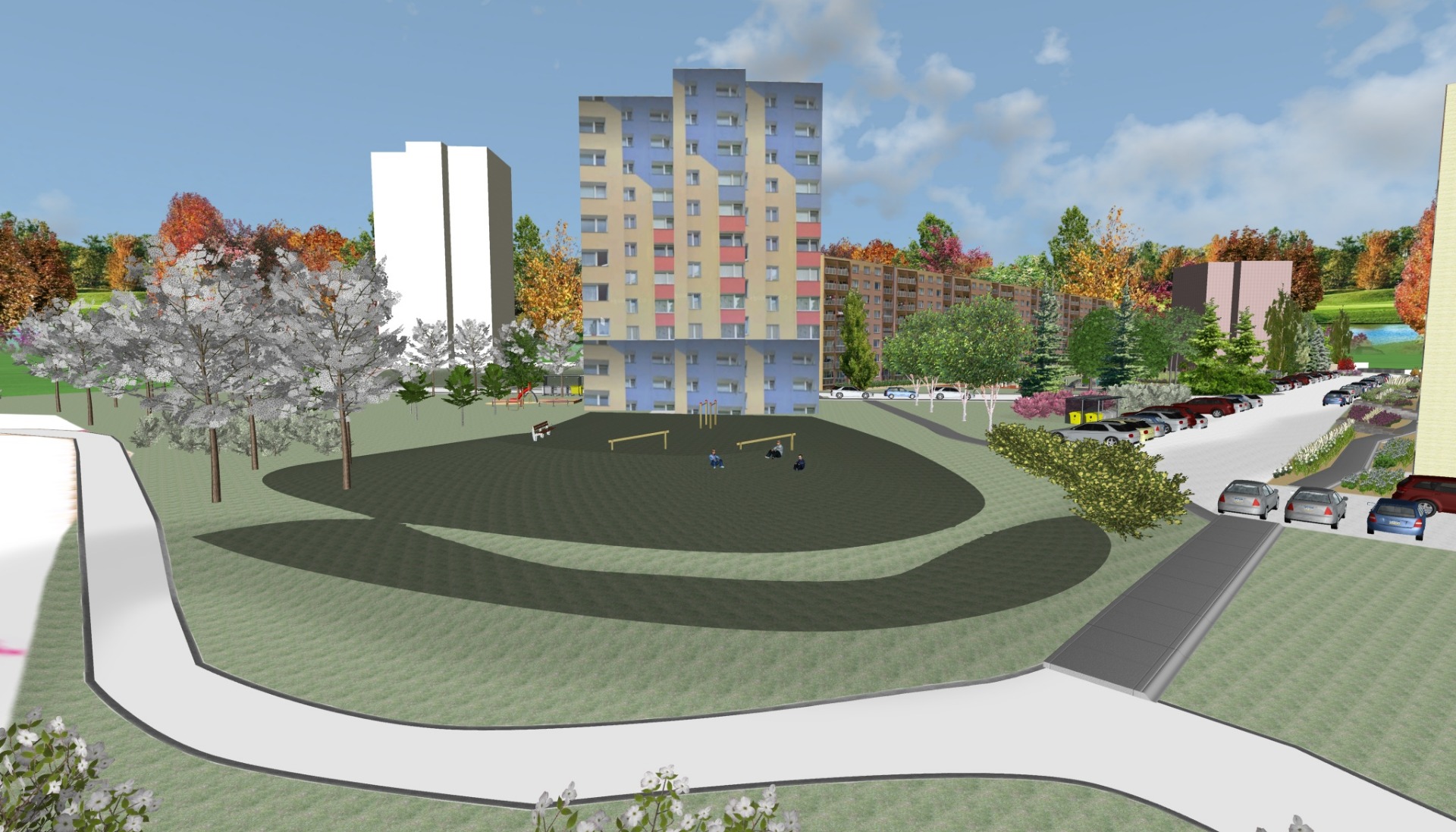 Zadání bylo 3D vizualizace pro přiblížení prezentace široké veřejnosti. Stávající zeleň a současné herní prvky jsou nevyhovující, projednávaná možná revitalizace. Veřejnost nemá představivost a nevidí možná řešení z projektů architekta. Vizualizace jim vše objasní a přiblíží a je možná diskuze o plánovaných změnách. Studie předána magistrátu. Rok: 2018.